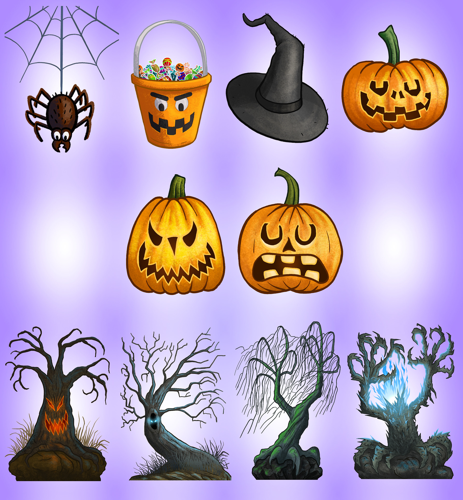Halloween themed Illustrations for Random Salad Games' Mahjong game.