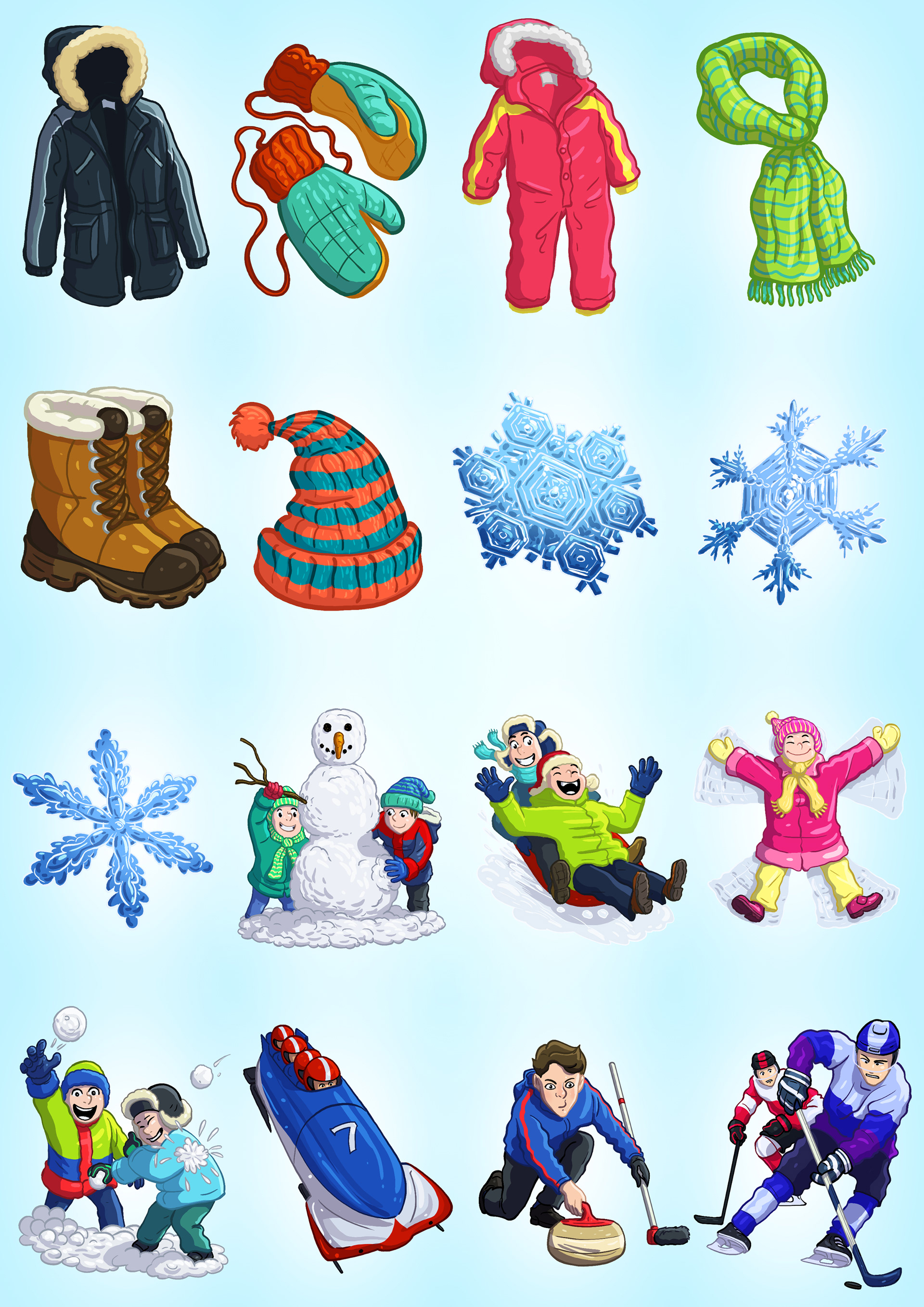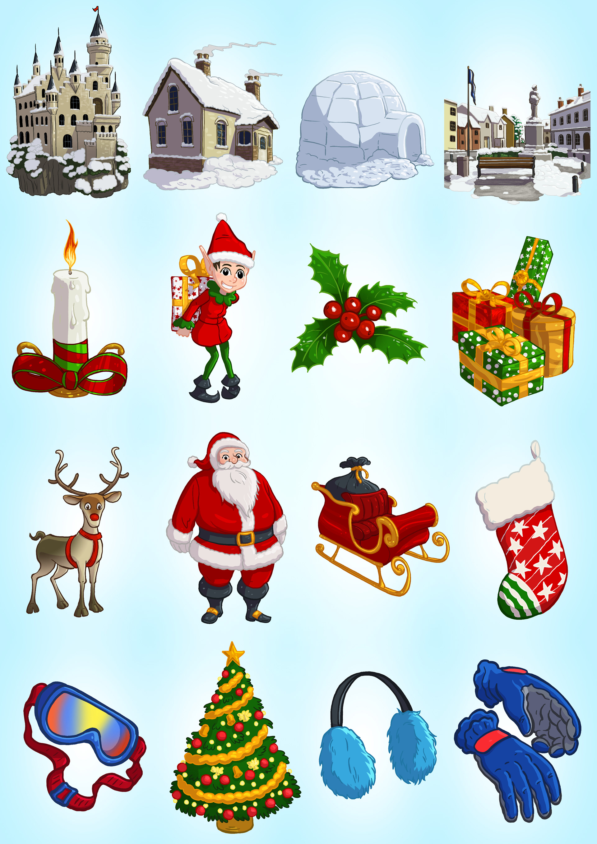 Winter themed illustrations for Random Salad Games' Mahjong game.